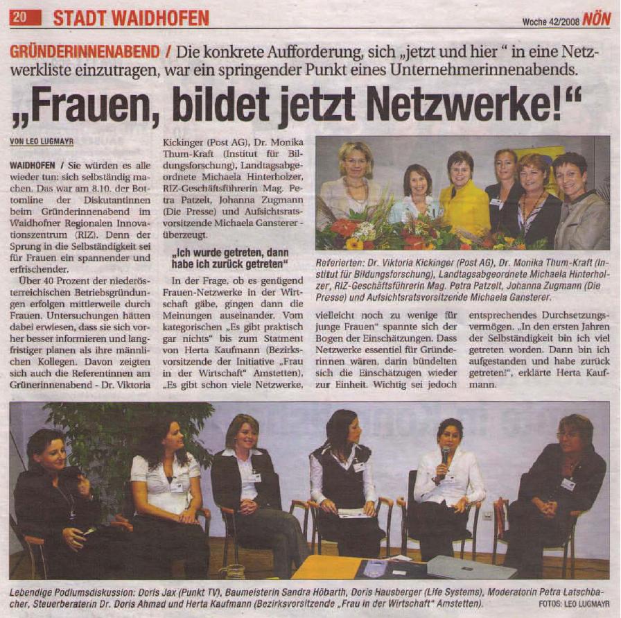 NÖN 42. Woche/2008 "Gründerinnenabend"