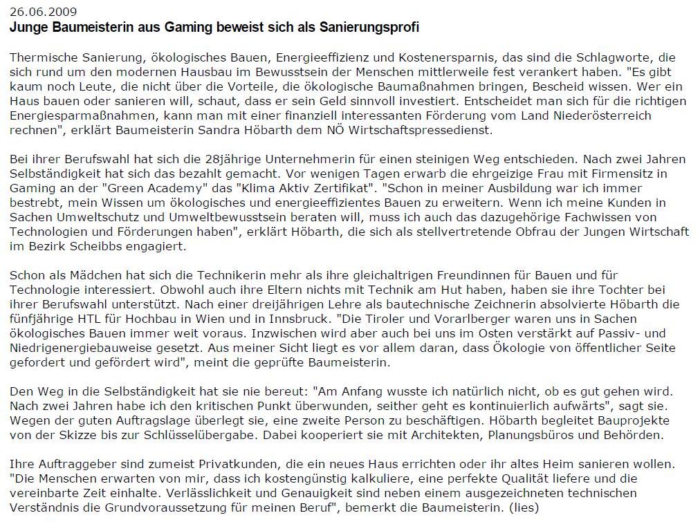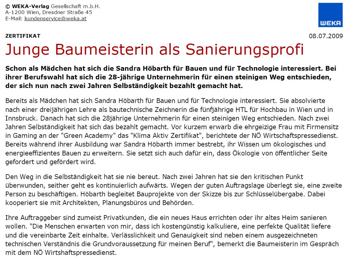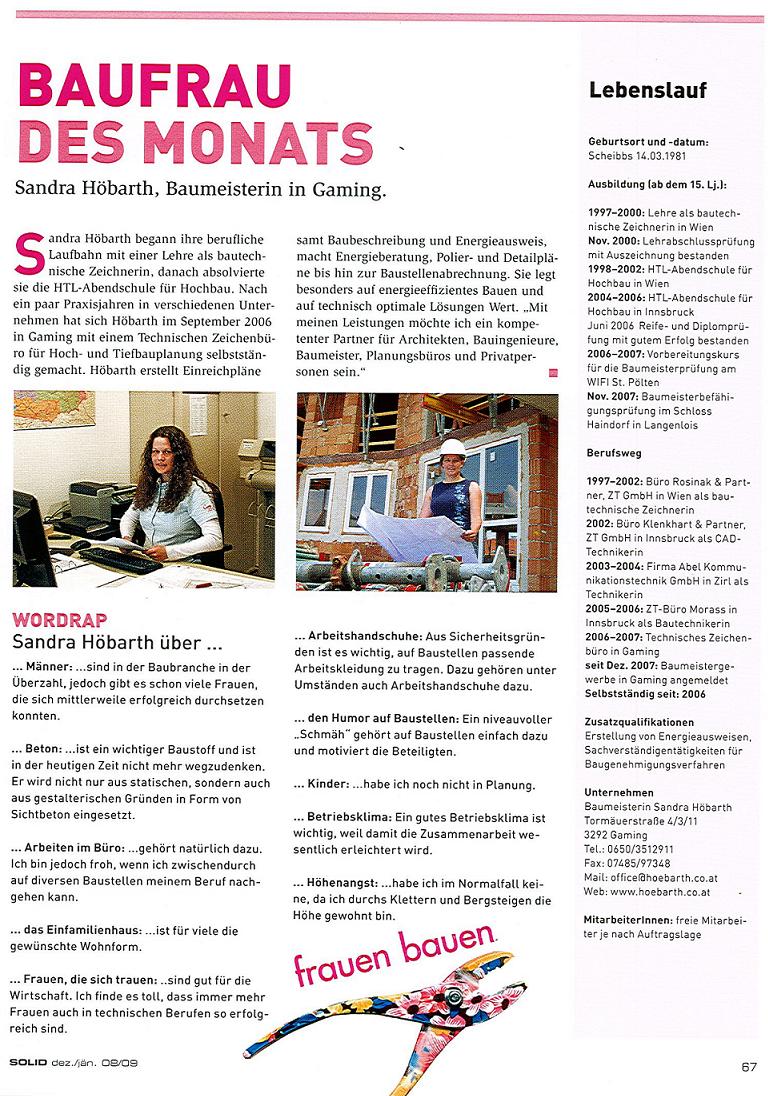 www.frauenbauen.at "Baufrau des Monats" 12/2008