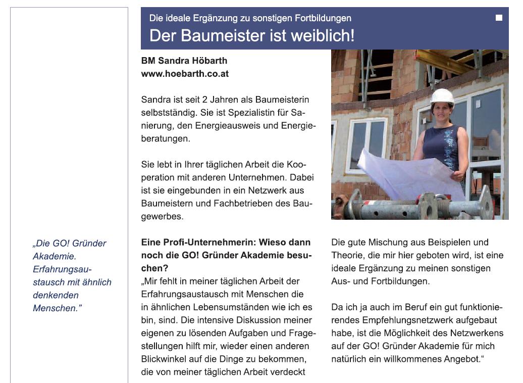 GO Gründerakademie 01/2009 "Der Baumeister ist weiblich!"
