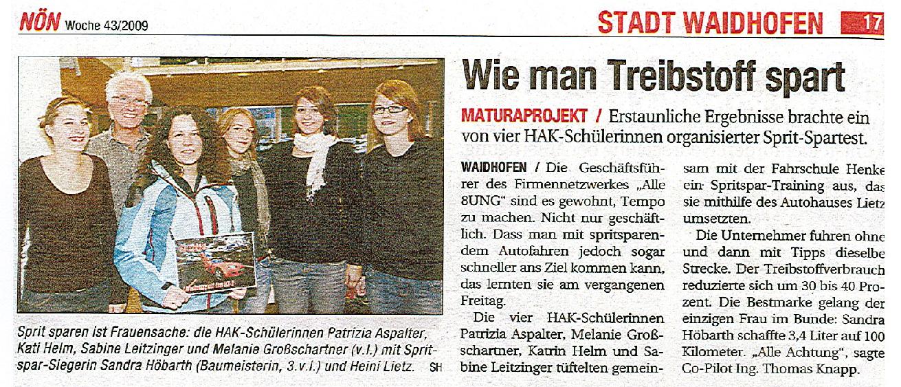 NÖN 43. Woche/2009 "Spritspartraining"WEKA-Verlag 08.07.2009